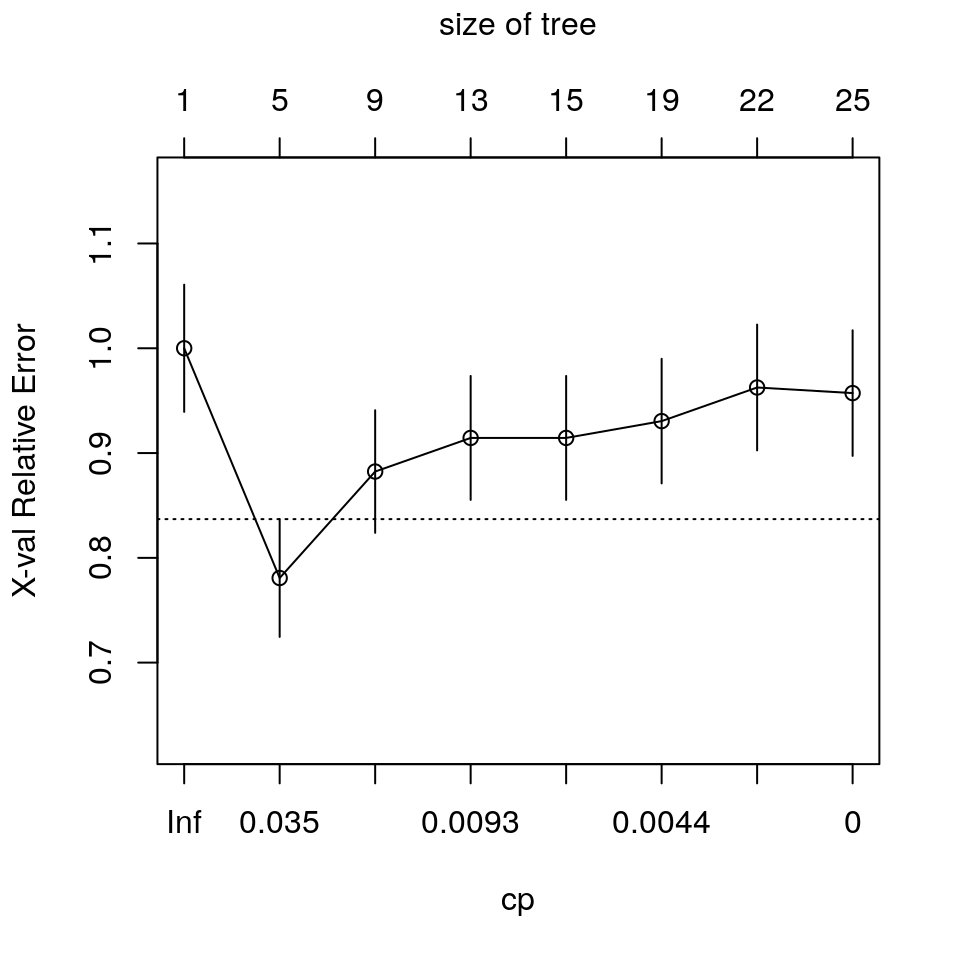 Notate come l’albero con tasso xerror minimo è quello con parametro CP pari a 0.