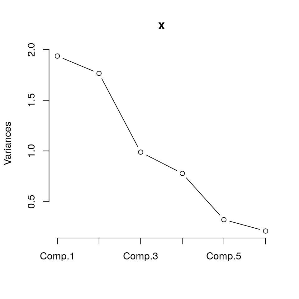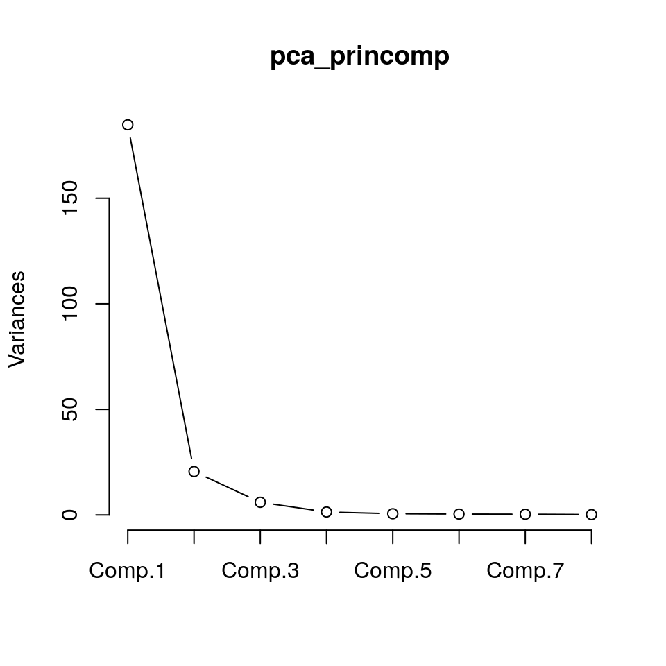 princomp() inoltre usa \(n\) (la dimensione del campione) come divisore per il calcolo delle varianze